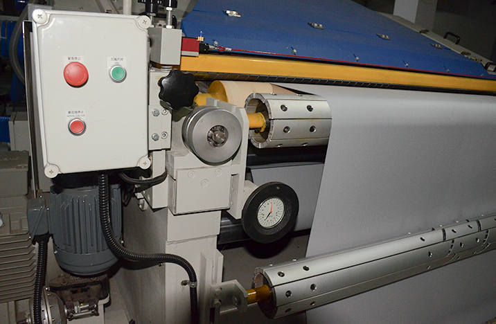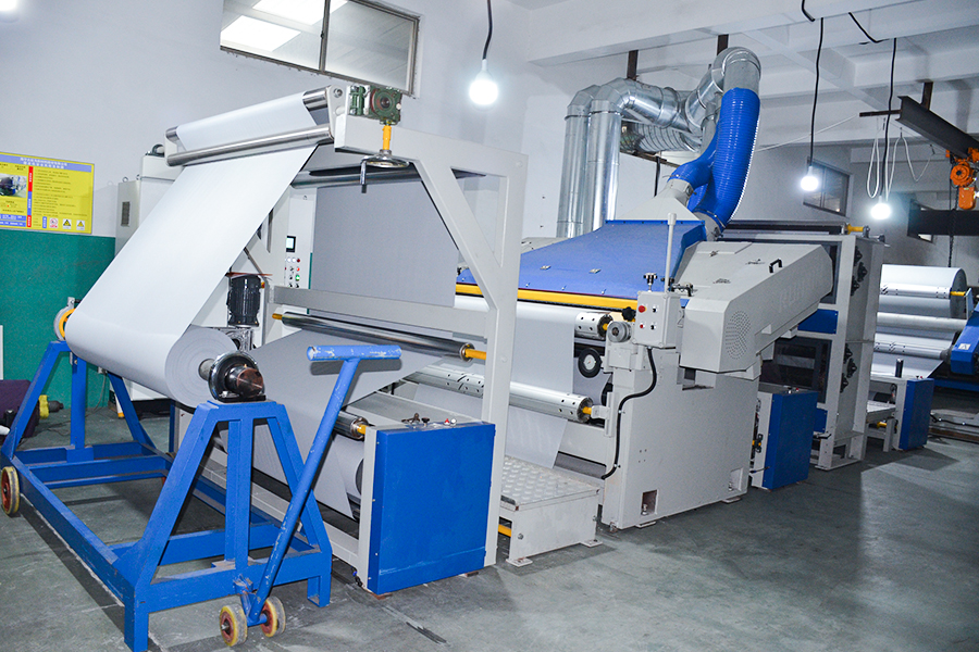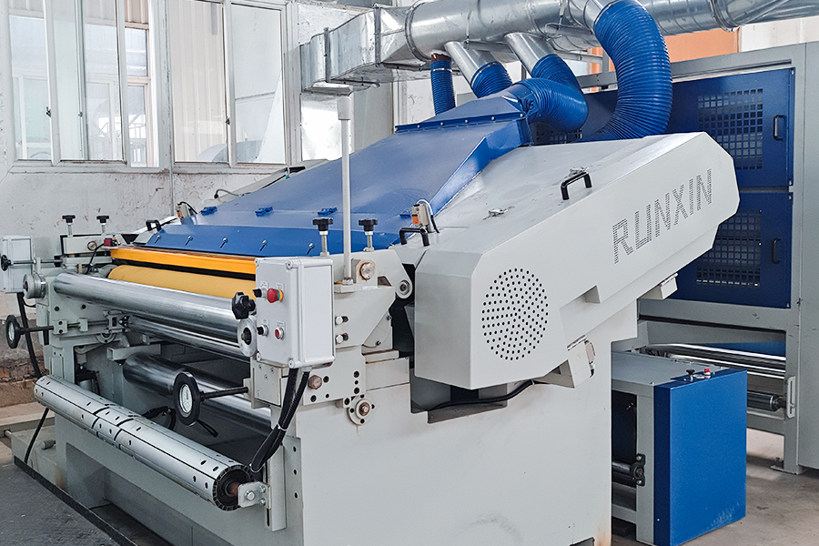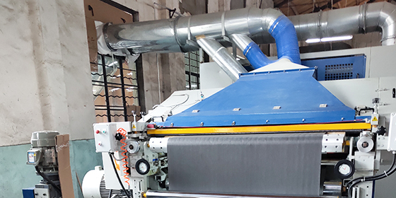 ที่ 3200mm circular sanding belt provides a longer contact area for sanding, eliminating the transverse defects caused by sanding belt seams in traditional sanding machines, thereby ensuring a smooth and uniform surface finish on the processed fabric. This circular sanding belt design reduces machine downtime, making belt changes quick and easy, significantly improving production efficiency.