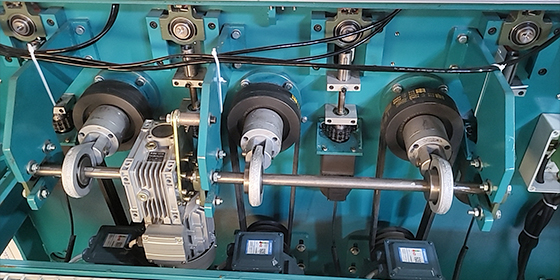 ที่ lateral motion mechanism emphasizes durability and ease of maintenance: ที่ MW model sueding machine's lateral motion system utilizes high-quality materials and a modular structure, ensuring mechanical stability and durability under long-term, high-intensity production conditions. This mechanism enables precise oscillation of the fabric widthwise, ensuring uniform contact between the roller and the fabric and eliminating uneven edge sueding.To facilitate maintenance, Huayi has optimized the disassembly, assembly, and lubrication of the lateral motion mechanism. Using quick-release components and a low-maintenance design, maintenance personnel can quickly complete cleaning, lubrication, and replacement tasks, minimizing downtime. This not only reduces maintenance costs but also ensures efficient production line operation.